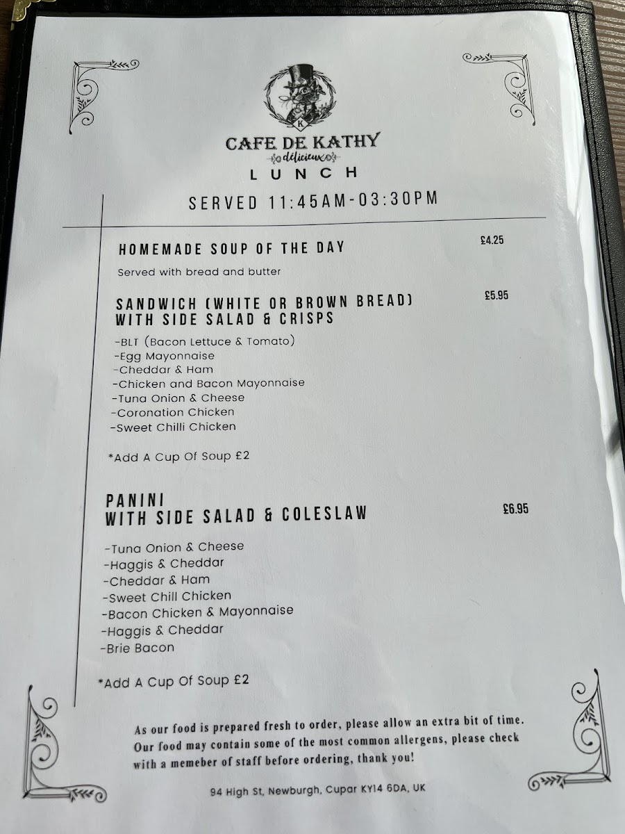 Welcome to Cafe de Kathy, a charming cafe nestled at 94 High St, Newburgh, Cupar KY14 6DA. This delightful spot offers a menu that celebrates simplicity and quality, perfect for a culinary escape.